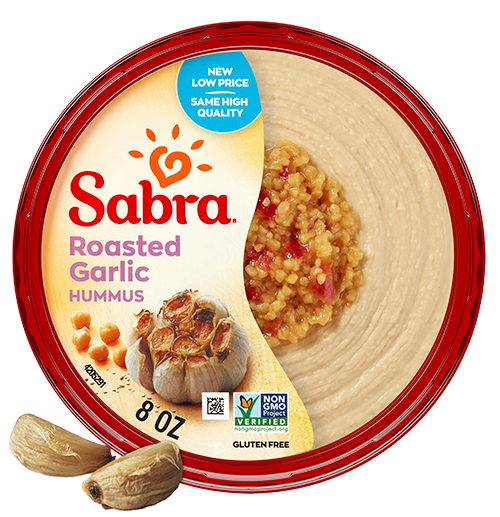 - Roasted Garlic Hummus Dip: Sabra® Roasted Garlic Hummus is so delicious in so many ways. An abundance of finely roasted garlic gives this hummus a richer, deeper taste that goes great with just about anything. 8 oz.